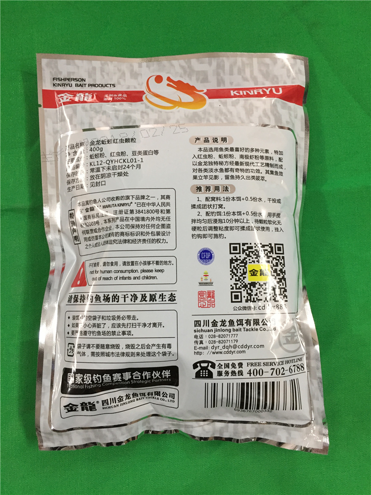 产品说明:本品选用鱼类最喜好的多种元素,特加入红虫粉、蚯蚓粉、南极虾粉等原料,配以金龙独特秘方经最新现代工艺精制而成,对各类淡水鱼都有奇特的功效,其集鱼效果立竿见影,留鱼持久出类拔萃。